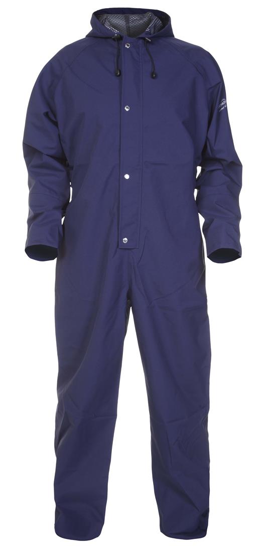 Overall Simply No Sweat 100% waterdicht met vaste capuchon, rits met dubbele stormflap en drukknopen, elastische taille, verstelbare pijpen met drukknopen, windvangers in mouwen met waterkering.