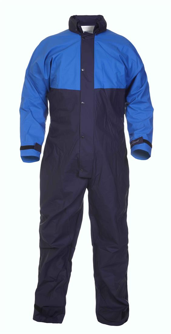 Hoogfrequent gelaste naden, 100% waterdicht, kap in kraag, verstelbare mouwen, ritssluiting met dubbele stormflap met drukknopen, elastiek in taille, windvangers in mouwen, verstelbare broekspijpen.