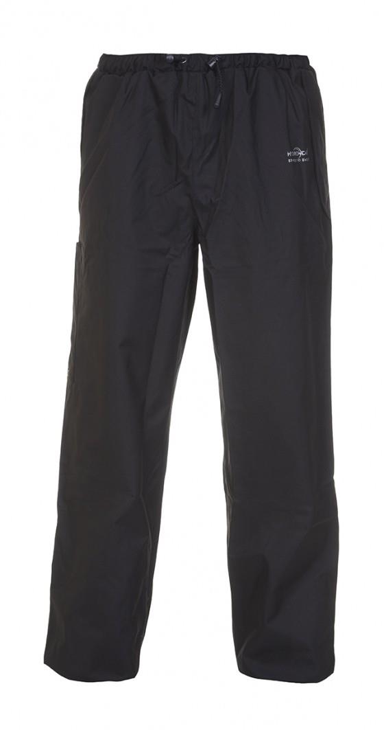 Regenbroek Simply No sweat 100% waterdicht met steekzakken, flap en klittenbandsluiting, elastiek in taille voor optimale pasvorm, pijpen verstelbaar met drukknoopsluiting, rits in pijpen, netvoering, ademend, waterdicht, winddicht, zeer soepel draagcomfort.