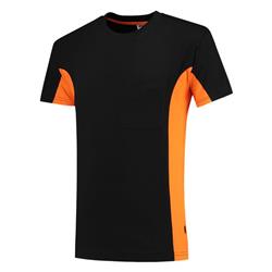 T-shirt 2Color-line Tiestoschouderstuk in contrastkleurop achterzijde kenmerkende \\\"2Color Curve\\\"unisex maatvoeringsingle jerseydubbele ribkraagnektape van schouder tot schouder.