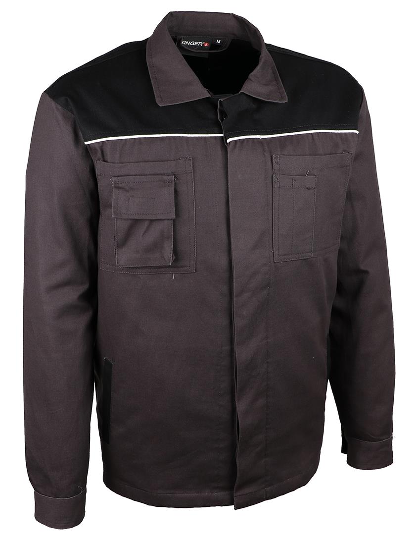 BeschrijvingWerkjas Vary met kraag.Sluiting aan de voorkant met knoopjes onder de klep.Twee borstzakken. Mobiele telefoon zak. Penhouder.Twee externe zakken in de taille. Twee zijzakken.Binnenzakken. Manchetten met knopen. Witte Band afwerking.Tweekleurig: zwart met grijs.Kwaliteit100% katoen. 300 g/m²KleurenGrijs/zwartMatenS tm 4XL