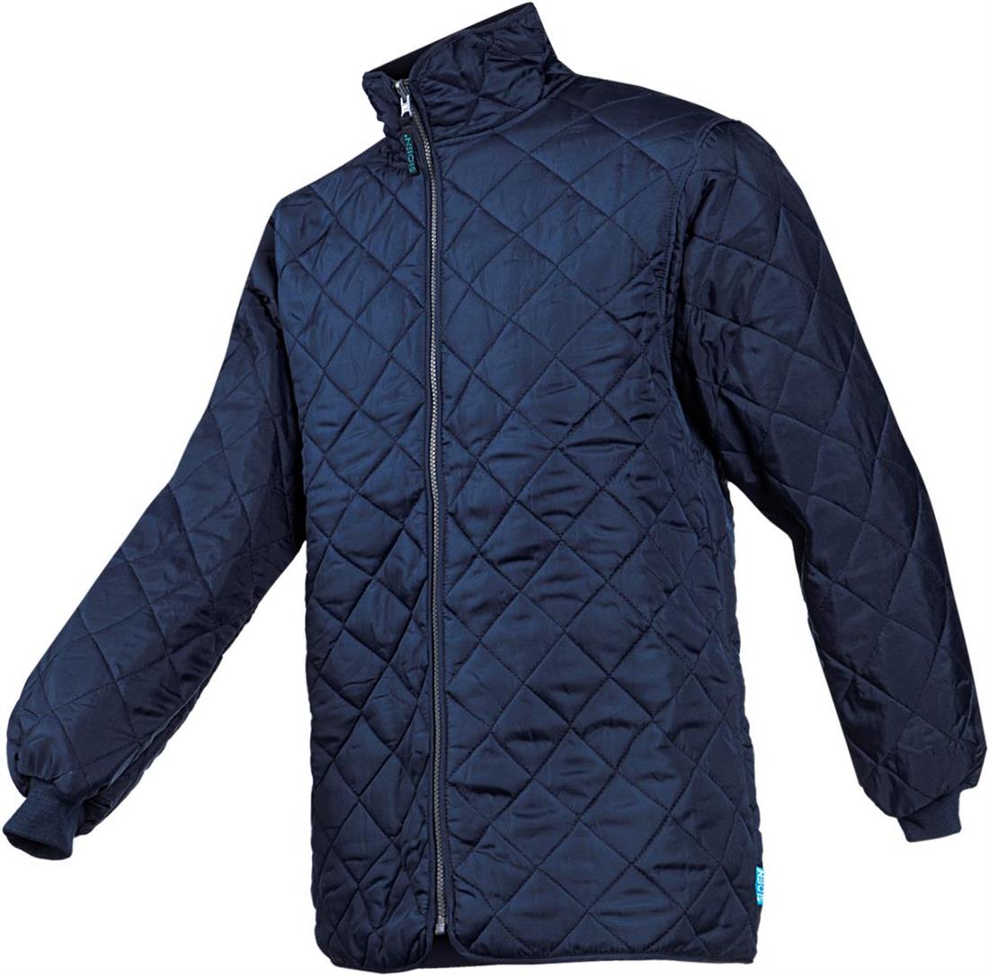 BeschrijvingGemattelasseerde voering, goede koude bescherming, gestikte naden.Binnenkant heeft vaste gewatteerde voering.Buitenkant heeft rechtopstaande kraag, ritssluiting, elastische polsband, ruglengte 78 cm.Kwaliteit100 % PES, ± 210 gr/m²KleurenB75 NavyMatenS t/m 3XL