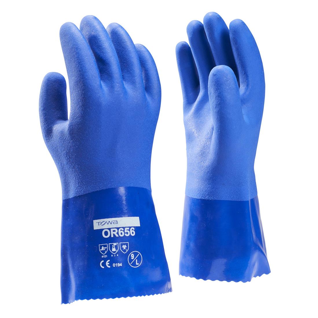De OR656 is vervaardigd van duurzaam PVC op een naadloos gebreide katoenen binnenhandschoen. Door zijn ruwe coating en anti-oil component kan deze handschoen de meest extreme natte, gladde en olienatte situaties aan.