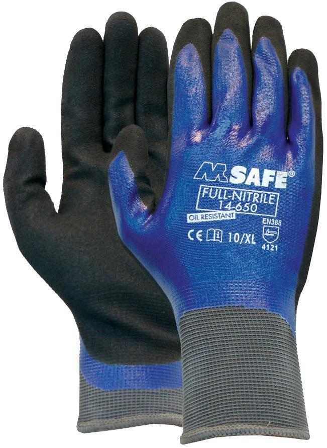 BeschrijvingHANDSCHOEN MET DUBBELE NITRIL COATING (SANDY FINISH)- De naadloze drager zorgt voor optimaal comfort- De Sandy Finish coating met unieke open structuur zorgt voor een optimale grip in met name olieachtige werkomgevingen- Ondoordringbaar voor water en olie en dus geschikt voor werkzaamheden in natte of olieachtige werkomgevingen- Voorkomt allergie risico bij werken met overvloedig oliecontact- Uitstekend comfort door de zeer goede pasvorm- Door de donkere kleur is de handschoen uitermate geschikt voor gebruik in omgevingen met een zekere mate van vervuilingKwaliteit- Nylon/Lycra drager (15 gauge)Kleurenzwart/blauwMaten08/M tm 11/2XL