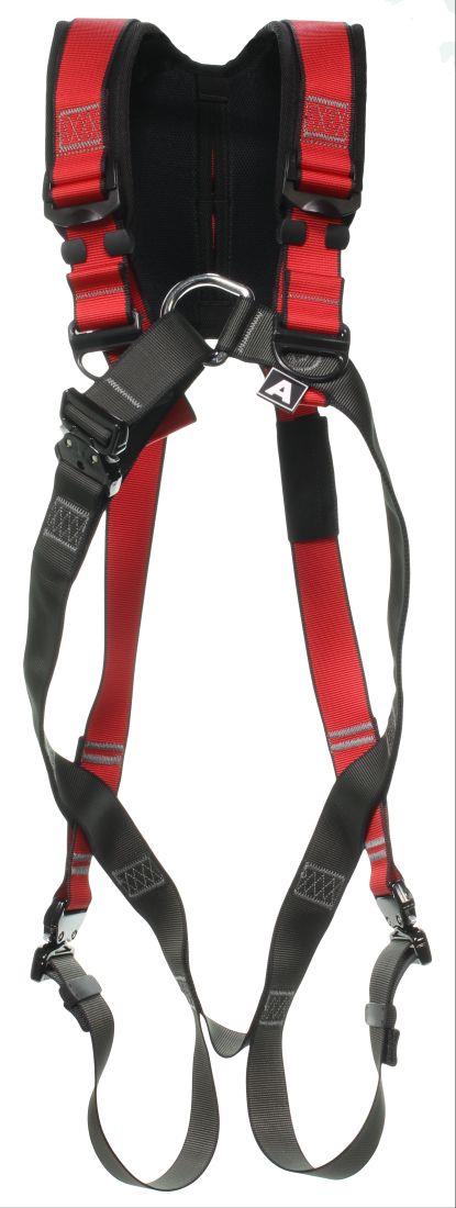 BeschrijvingHarnas Aventure Toronto harnasgordel 2D met 1 D-ring op de borst, 1D-ring op de rug, rugpolstering en gepatenteerde valindicator. Sluiting met snel-sluit-gespen.KwaliteitNylon, staalKleurenZwart/roodNormenEN 361Maten