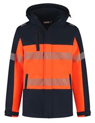 Fluorescerend veiligheids-softshell jacket van Santino conform de Europese norm EN 17353:2020 - AB3, 100% gerecycled polyester (GRS gecertificeerd), 300 gr/m2, unisex, modern fit, 3-laags softshell me...>