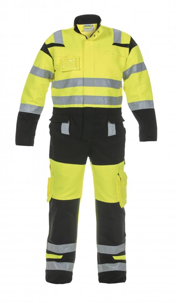 Hivis overall met afritsbare swingpockets, separaat te bestellen, 2 borstzakken met klep, 2 steekzakken met intast, ID houder lus, verdekte rits door flap, manchetten verstelbaar door klittenbandsluiting, stretch in schouders voor extra bewegingsvrijheid, dijbeenzak met klep, dubbele duimstokzak, 2 achterzakken, kniezakken, achterzijde broek stretch voor extra comfort, verstelbaar in taille met elastiek.