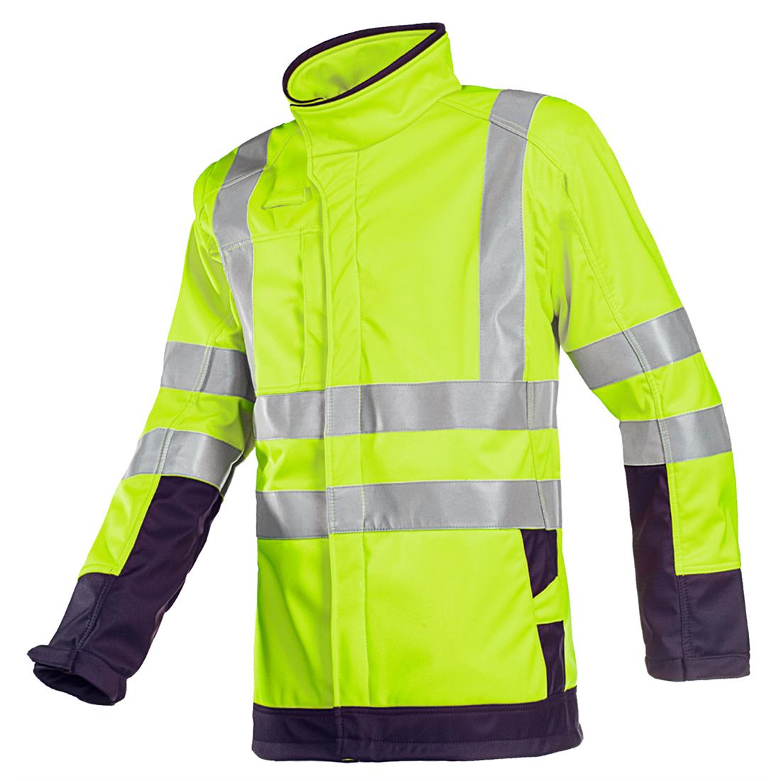 Vlamvertragende en antistatische signalisatie softshell met gestikte naden. Binnenkant heeft 1 binnenzak.