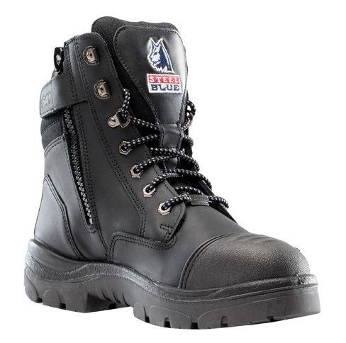 De Steel Blue Southern Cross Zip is waterdicht, heeft een stalen neus voor bescherming van de tenen en penetratiebestendige tussenzool (kunststof)