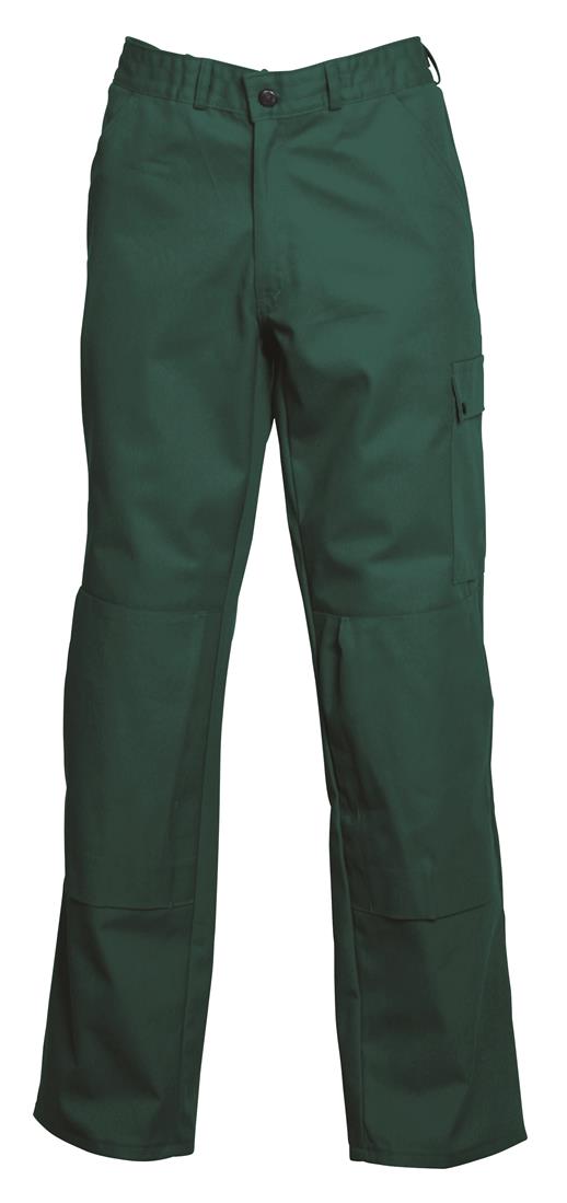 Werkbroek met ritssluiting, riemlussen, 2 ingezette zijzakken, 2 achterzakken, duimstokzak, kniezakken, elastiek in rug.