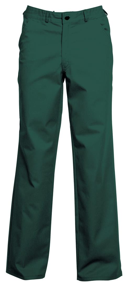 Werkbroek met ritssluiting, drukknopen, riemlussen, 2 ingezette zijzakken, duimstokzak, elastiek in rug achterzak.