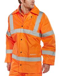 Het fluorescerend materiaal moet de torso, de mouwen en de benen minstens 5 cm omcirkelen. Onderbrekingen van fluorescerend materiaal door reflecterende banden zijn toegestaan (zoals het geval bij Rijkswaterstaatkleding: de verticale reflectieband van 25 mm over de mouwen en pijpen) De verhouding fluomateriaal voor en achter zal gelijk zijn aan 50% +/-10%.